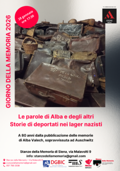 Sarà l’occasione per ricordare 80 esimo anniversario della pubblicazione del testo testimonianza “A 24029″ di Alba Valech, riappropriarsi dell’eredità di memoria dei deportati militari attraverso le pagine del diario di Martino Bardotti, conoscere il recente ritrovamento del diario di Emilio Marconi deportato politico dal territorio senese.