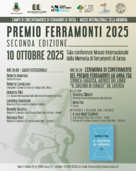 Il 10 ottobre 2025 verrà conferito il Premio Ferramonti – seconda edizione – alla storica Anna Foa, autrice del libro “Il suicidio di Israele”, edizioni Laterza. Il conferimento del prestigioso riconoscimento al libro “IL SUICIDIO DI ISRAELE” si fonda sul fatto che l’autrice, partendo dal vile attacco terroristico e stragista di Hamas del 07 Ottobre 2023, ripercorre la storia del Sionismo dagli albori ad oggi. Nel racconto storico di quella ideologia politica l’autrice precisa che si deve distinguere tra i vari sionismi, evidenziando la differenza tra il sionismo di oggi in Israele e il sionismo della Diaspora – quello solidale e sociale- analizzato, studiato e vissuto nel Campo di Concentramento di Ferramonti di Tarsia. L’autrice, da Ebrea, senza disconoscere la strage di Hamas, analizza la situazione israeliana- senza nascondere il massacro indistinto di terroristi e civili palestinesi- con sguardo lucido, critico e preoccupato: afferma che ciò che sta accadendo in Israele, a causa di decisioni politiche dannose che generano perdita di valori fondativi e di umanità, è un suicidio politico, che può essere evitato attivandosi non con le armi ma con la diplomazia: “Qualunque sostegno ai diritti di Israele – esistenza, sicurezza – non può prescindere da quello dei diritti dei palestinesi.”