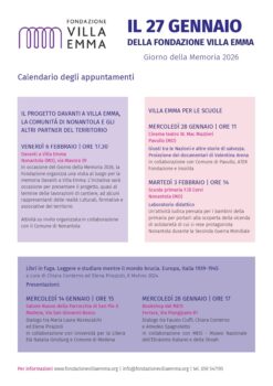 Il 6 febbraio alle ore 17,30 la fondazione organizza una visita al luogo per la memoria Davanti a Villa Emma. L’iniziativa sarà occasione per presentare il progetto, quasi al termine delle lavorazioni di cantiere, ad alcuni rappresentanti delle realtà culturali, formative e associative del territorio. (Evento ad invito)